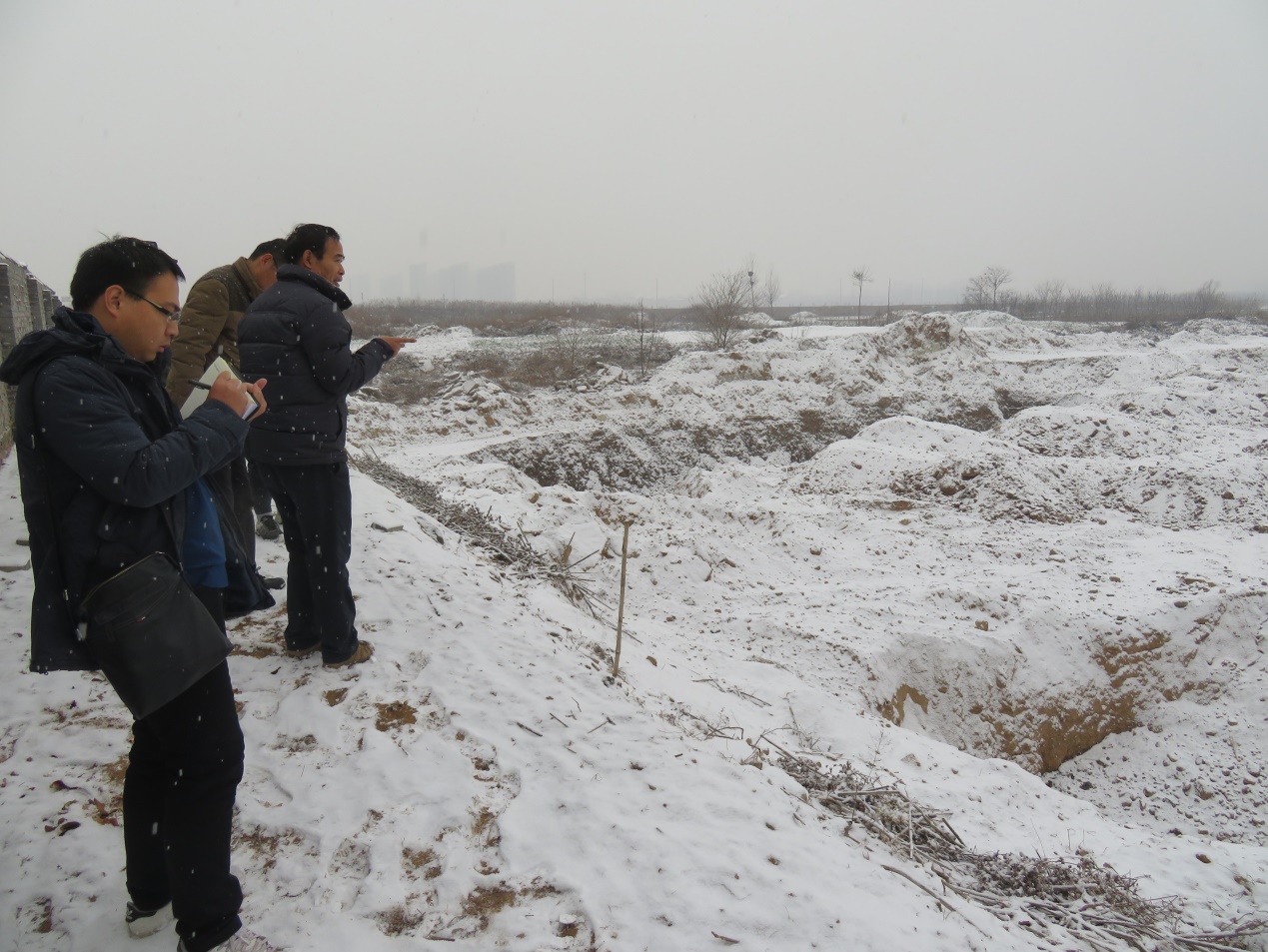 接到委托后, 2019年1月9日~11日,河南省煤炭地质勘察研究总院任聚奎所长带领职工李林记、何泽源、孙会军等技术组冒着鹅毛大雪开车奔赴洛阳、偃师,开展非法采矿造成矿产资源破坏价值技术鉴定工作。